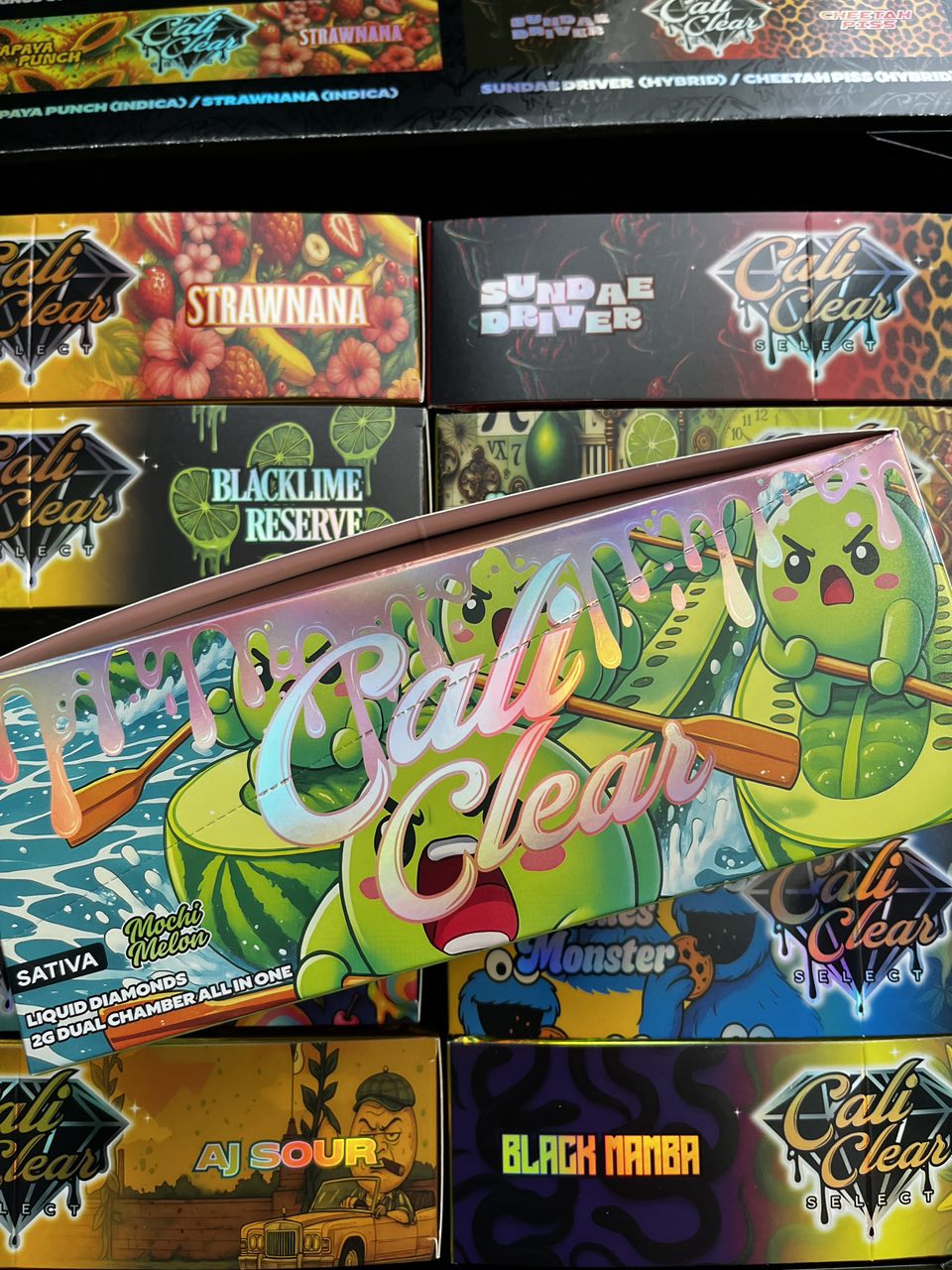 Cali Clear Guava Haze / Mochi Melon, Cali Clear Cuban Linx / Rainbow Sherbert, Cali Clear Three Kings OG / AJ Sour, Cali Clear Magnus Opus / Black Lime Reserve, Cali Clear Papaya Punch / Strawnana, Cali Clear Sundae Driver / Cheetah Piss, Cali Clear Key Lime Pie / Raspberry Tart, Cali Clear Leche de Bebe / Crunch Berries, Cali Clear Cookies Monster / Mango Haze, Cali Clear Black Mamba / Lemon Jet Fuel, Cali Clear Blueberry Kush / Strawberry Gelato, Cali Clear Pineapple Express / Mango Dream, Cali Clear Lemon Haze / Watermelon Zkittlez, Cali Clear Blue Razz Ice / Strawberry Burst, Cali Clear Lemon Lime Soda / Mango Frost, Cali Clear Grape Glacier / Watermelon Chill
